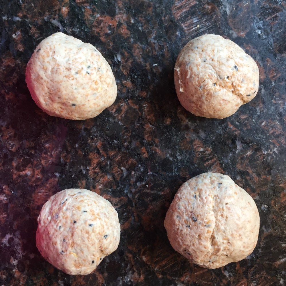 When the dough has risen split it it to 6 equal portions and loosely roll into balls.