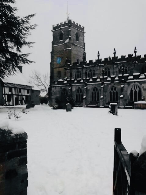 My local church in the snow. This is a 16th century grade 2 listed building built by the local landowner so his tenants didn’t have to cross a dangerous stream. There is a secret tunnel that leads from the basement of the building next door to the church but no one knows where it comes out in the church as the door at the end can’t be opened and there is no mystery door in the church! Where is it?????