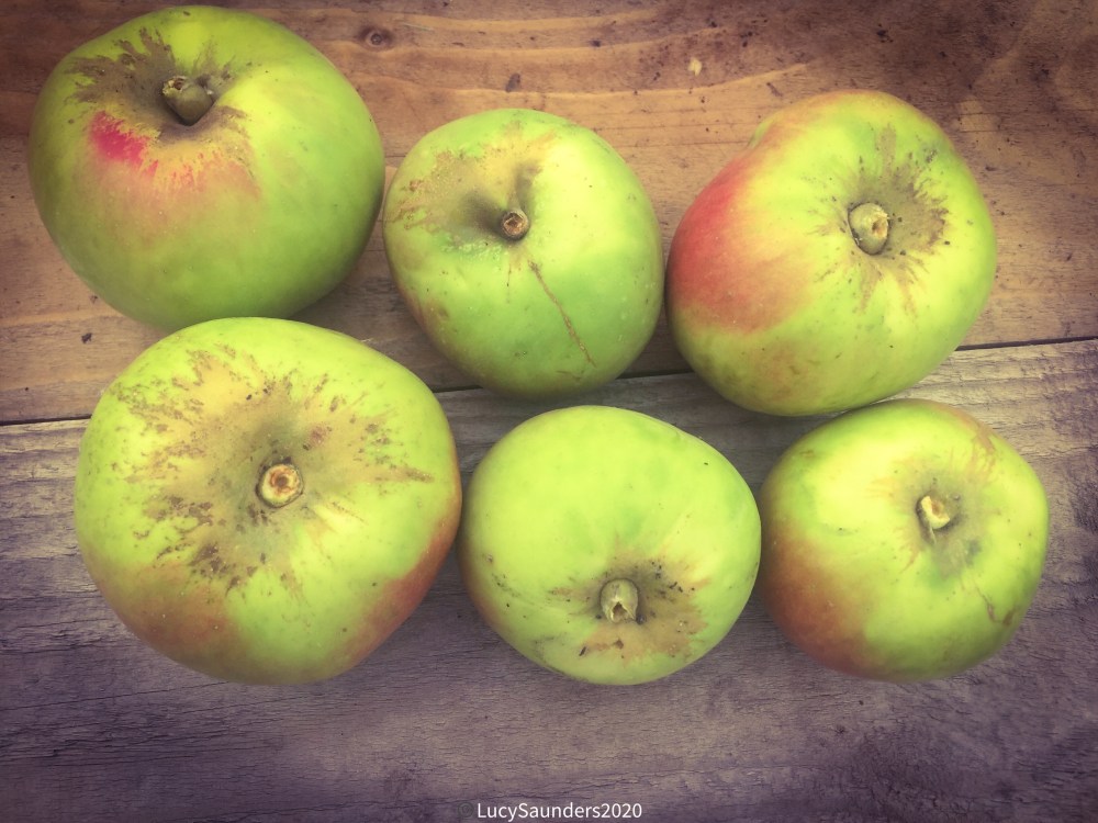 I’m growing Bramley 20 as part of a family tree and it is by far the most vigorous portion of the tree, double the size of the others and with twice as much fruit. This is actually causing a little bit of difficulty as it needs careful pruning to stop the tree becoming unbalanced. Bramley 20 is very productive producing many apples which will may need thinning. The idea harvest time is supposed to be mid October however I was certainly picking earlier this year.