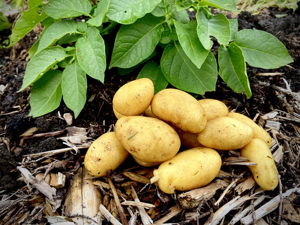 Expect upwards of ten hen egg sized potatoes per plant. Below is the harvest from one plant this year. Each plant should be enough to serve 2-4 portions.