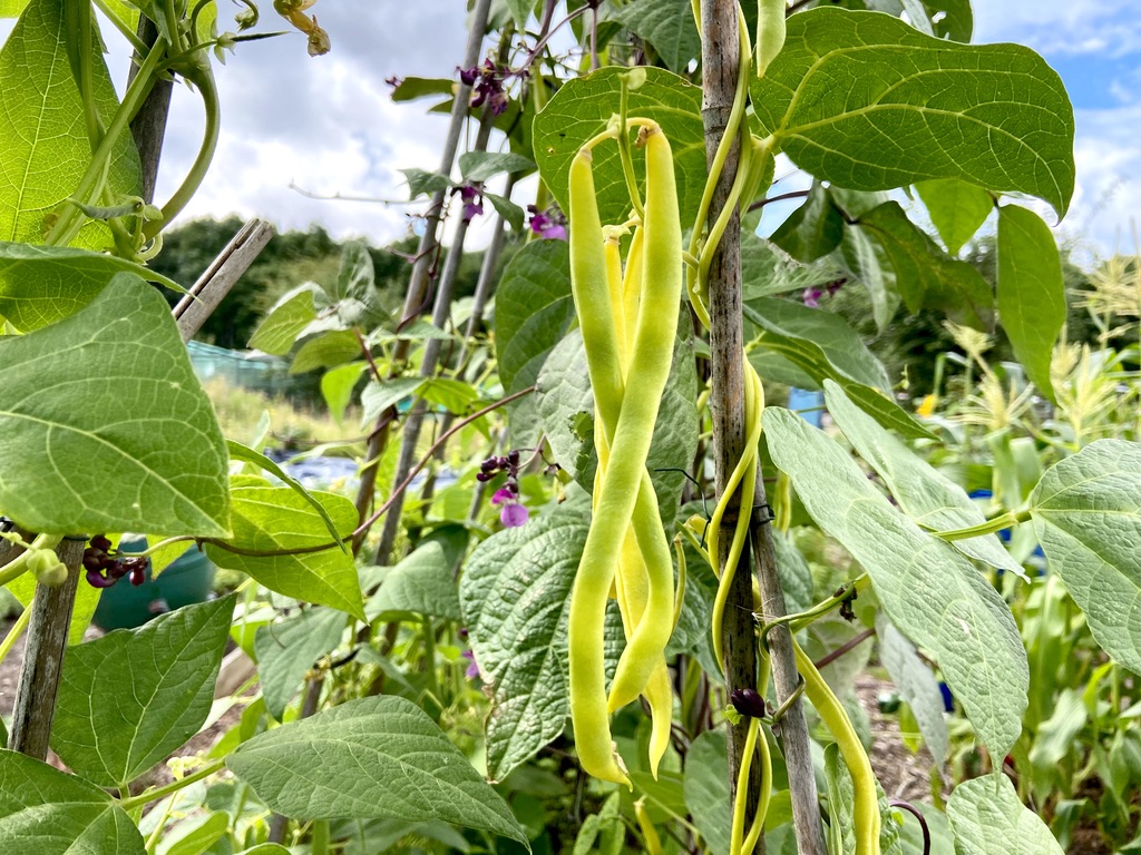 Climbing or pole beans are slower to mature than their dwarf cousins but they make up for it with a much higher yield and can produce 600g to 1kg of fruit per plant. I would put Neckar gold towards the lower end of that spectrum but it is still a big haul of nearly 10 portions per plant over a long season. Eight plants will keep a family of four supplied with beans through the season with a little extra for friends or the freezer.