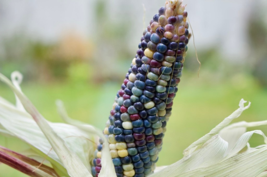 Very few vegetables can claim to be an internet sensation but there is one, a mixture of heritage corn bred by Oklahoma based, part Cherokee farmer Carl Barnes. Carl, who died in 2016, was a collector of traditional corn varieties and crossed coloured corns again and again to make a spectacular multi coloured flint (pop) corn.