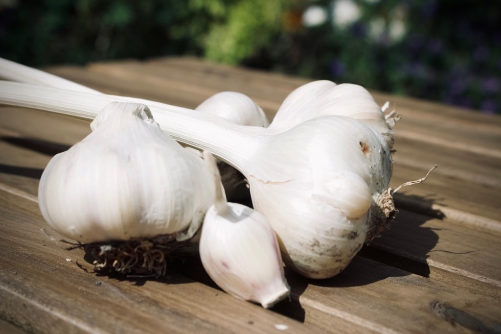 Garlic likes a sunny, well-drained site. Before planting dig in some well-rotted organic matter. Break the bulbs in to individual cloves, discarding any that are damaged or small. Plant the individual cloves pointed side up, 2.5cm deep and 15cm apart, leaving 30 cm between rows.