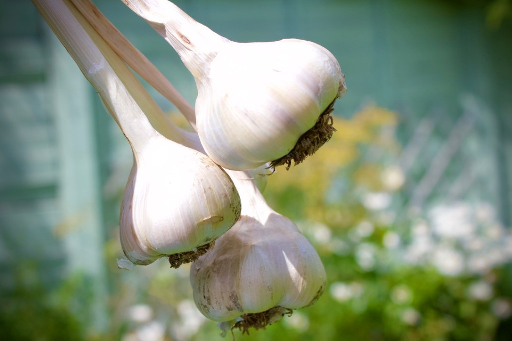 Harvest starts in June/July. The leaves will be starting to brown. Harvest during a dry period by gently loosening the roots with a fork before lifting the garlic. Don’t pull hard or you may leave the bulb in the ground.