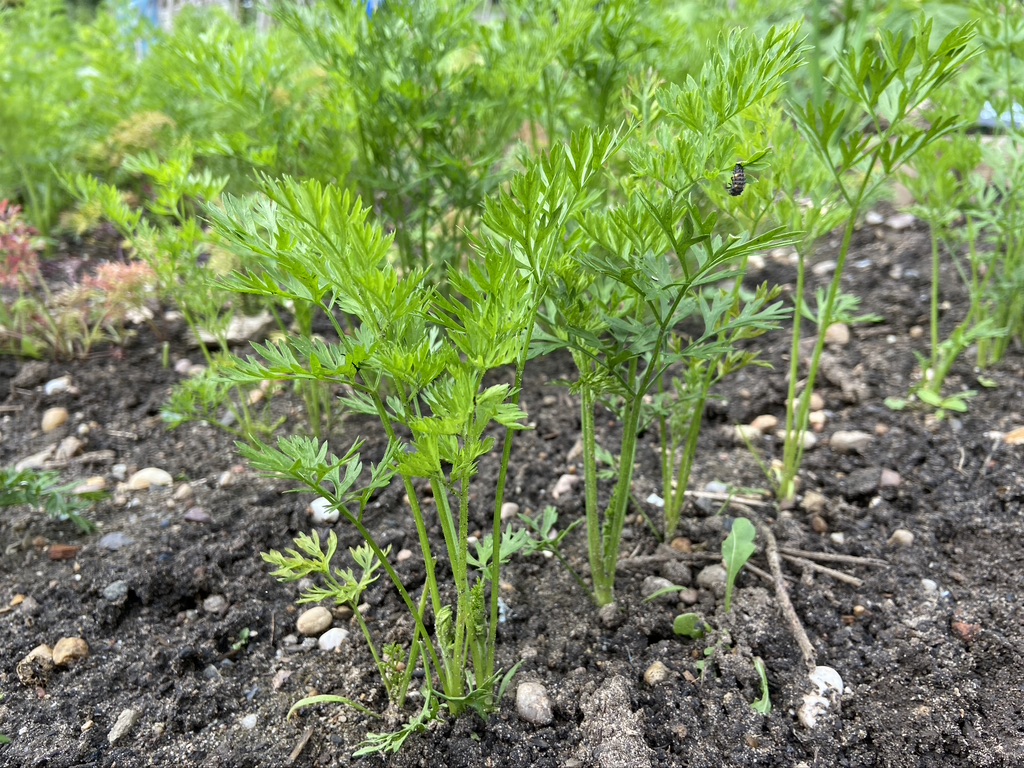 Once seeds have germinated thin to 1 every 5 cm. Remove the thinking’s as the smell can attract carrot fly.