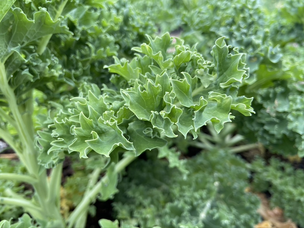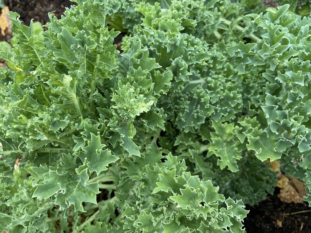 Not as big as some kales, dwarf green curled makes up for it in its bushiness. I would plant four per person to get a serving a week over winter. Having a slightly waxy surface they are left fairly well alone by slugs, snails and whitefly, however like most brassicas they will suffer from cabbage white caterpillars and pigeon damage so should be protected with butterfly netting.