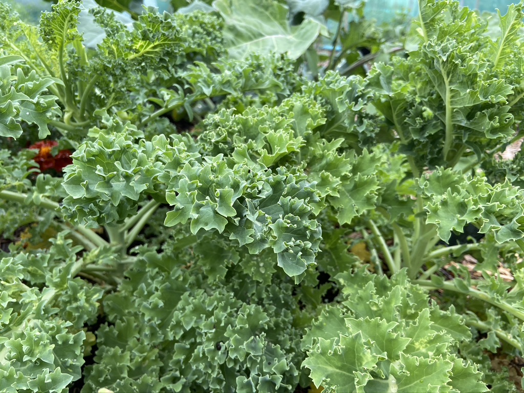 Often kale can be quite a large plant getting upwards of a metre. If you are on a windy site or can only provide netting to a certain hight then dwarf green curled could be an option, growing to a slightly more lower 40-60cm.
